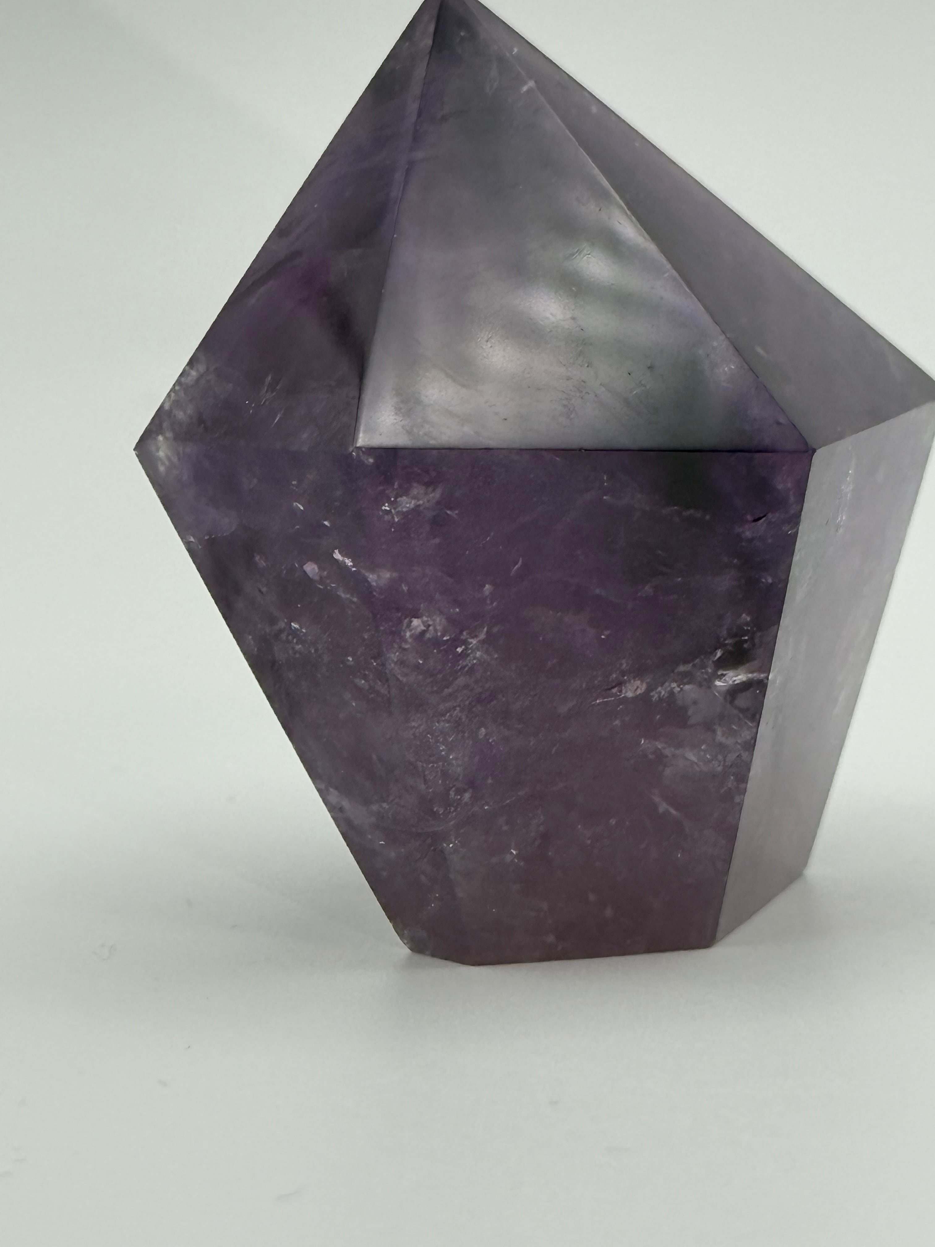 ウルグアイ産アイリスアメジストは、そのユニークな逆テーパーの形状と鮮やかな紫色によって、空間に特別な存在感を与えます。この石が持つエネルギーを感じながら、あなたの毎日をより素晴らしいものにするお手伝いをいたします。